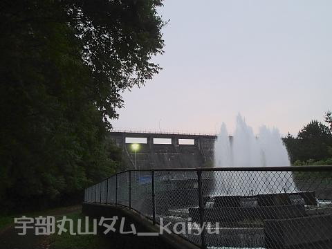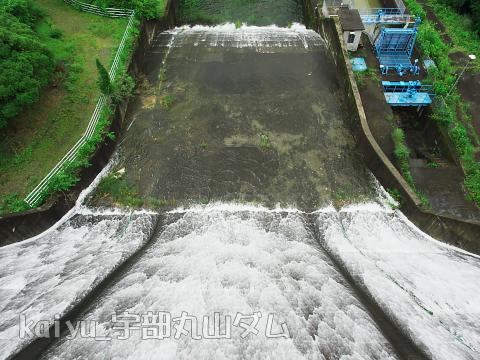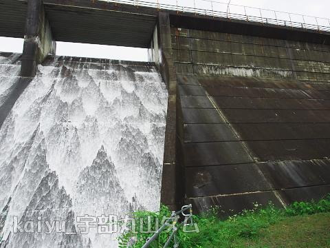 前日の大雨によりダムから越流したようです。隣の厚東川ダムもゲートから放流していました。