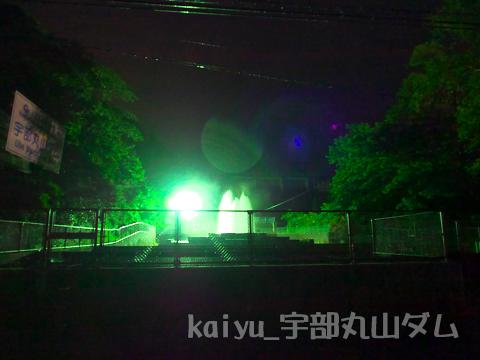噴水とダムを。照明が眩しい。