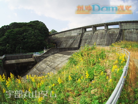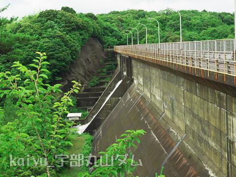 宇部市の厚東川ダム隣にある利水ダム。2011年9月訪問。トンネルで厚東川ダムの湖と結ばれており、連携して運用している。国道2号を走っていると、突然見えるダムです。以前はダムがよく見えていた記憶がありますが、今は木が成長して全体が見えにくくなっています。