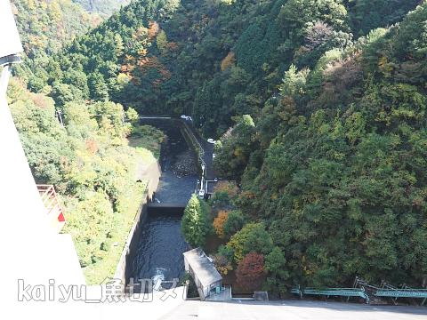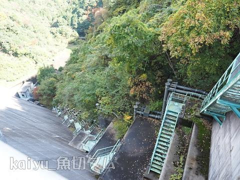 天端から下流を望みます。直下の設備では作業が行われているようです。作業の邪魔をしてはいけないので下流は次回にしました。