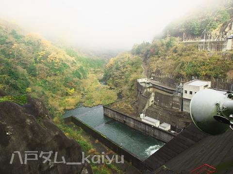 右岸の八戸ダムの碑。