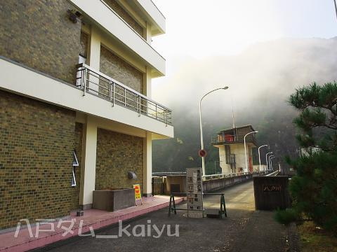 島根県が管理するダムで最大の貯水量があるダム。2014年11月に訪ねました。朝靄の中に赤いゲートが目立ちます。
