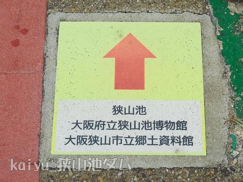 2016年8月に狭山池ダムを訪ねました。最寄りの駅からは、このように表示があるので歩いて迷うことなくたどり着けます。