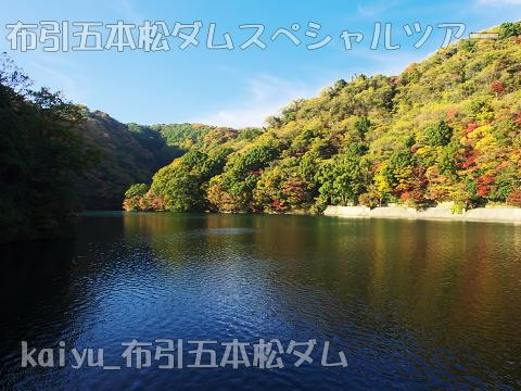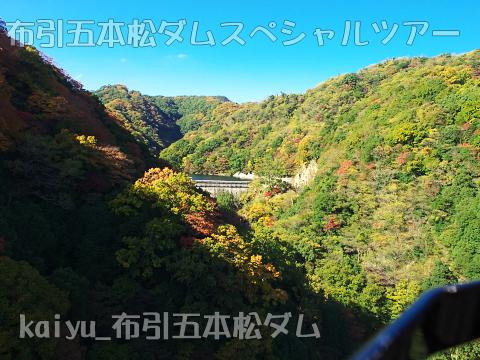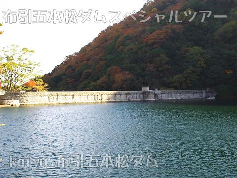 天端を出て、下流に移動します。堤体が影になってきましたが、紅葉はきれいでした。
