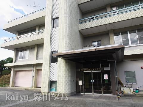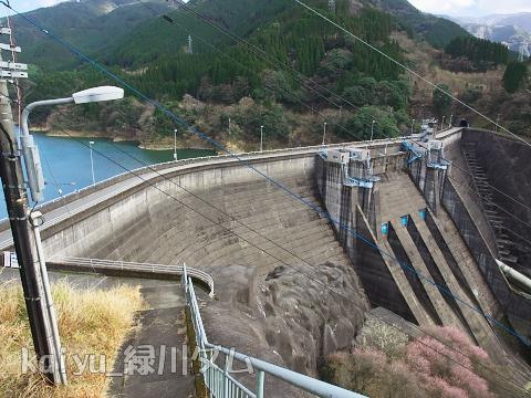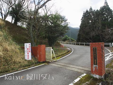 2017年2月に訪ねました。すぐ隣にある緑川補助ダムの天端が工事中で車は迂回となっており、車で管理所まで至ることができなかったので徒歩での移動です。時代を感じる、森と湖に親しむ旬間の看板。