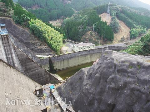 左岸から下流を望みます。下流から堤体を望みたいところですが、車は仮駐車場にあるためまた次の機会となります。