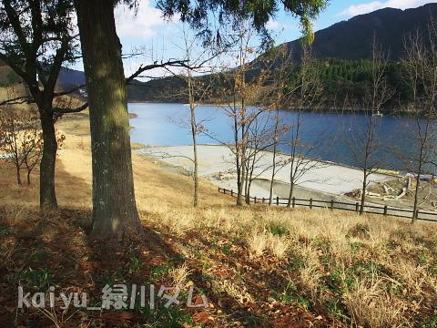 流木は、ダム湖にあるこの場所から回収しているようです。補助ダム天端を迂回して仮駐車場に車を駐車したので、車での移動ができませんでした。下流に行くには大きく迂回するため時間がなくダムを一周できなかったので、また訪ねたいと思います。