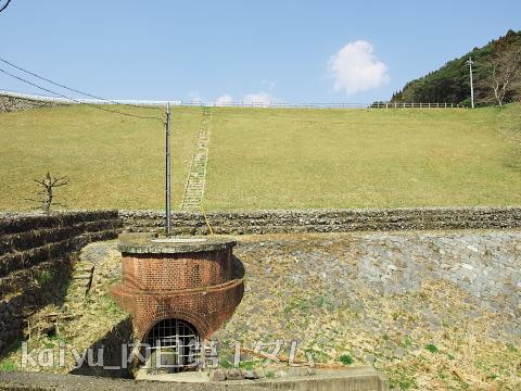 2019年9月に再訪問。まずは取水塔。内日第1ダムはレンガ造りになります。
