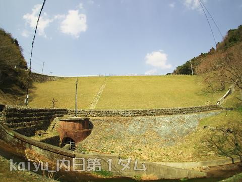 レンガづくりの取水塔が目印の内日第一ダムでした。