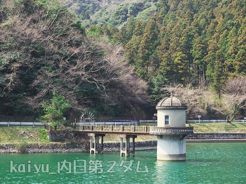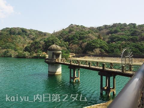 2017年3月に訪ねました。内日第1ダムのすぐ上流にある内日第2ダムです。鉄筋コンクリートづくりの取水塔が目印です。こちらは、取水塔、溢水隧道入口が有形文化財として登録されているそうです。