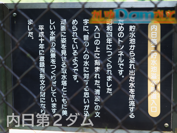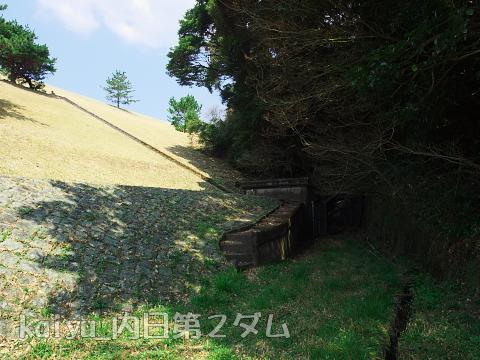 2019年9月の下関ダム巡り。4基目は内日第2ダム。前回見るのを忘れた余水吐きを見に来ました。