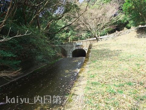 溢水隧道出口です。銘板には「泉天」とあります。