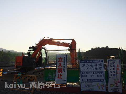 2017年5月に訪ねました。この日は、殿ダムへ向かう道中に立ち寄りましたので、朝の6時頃です。右岸側にある西原ダムの碑です。