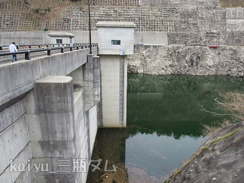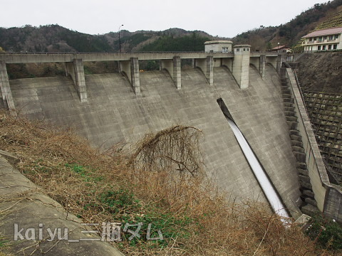 2018年3月に三瓶ダムを訪ねました。常用洪水吐きから越流中です。