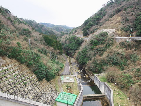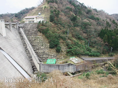 天端は車両通行可能です。駐車場は天端を通って、管理所を過ぎた辺りにあります。