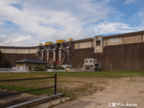 3つの色が目立つダム広島県にある国土交通省のダム。江の川の上流にあり、桜が有名なダム。この写真はダム下流より県道の橋の上から撮影。ゲート小屋の黄色が他にはない感じ。ゲートの色も違う。