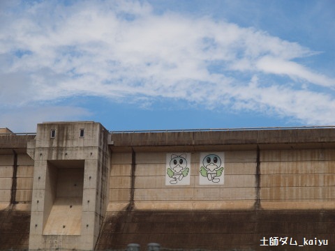 堤体に張ってある、土師ダムのキャラクター「はじ丸くん」らしい。