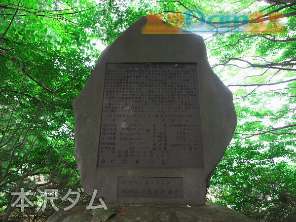 石碑の裏には、ダムの諸元や建設の経緯などが刻まれています。