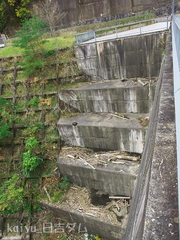 洪水吐きから下流を望みます。このゲートから試験以外で放流したことはないそうです。