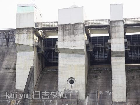 橋の上から堤体を望みます。常用洪水吐きは2門ですね。