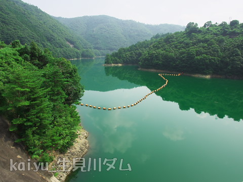 こちらがダム湖になります。網場が設置してありますね。