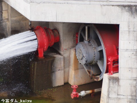 減勢工の側には、バルブが二つ。大きな方のバルブから放流する姿も見てみたい。