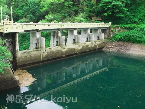 山の中にひっそりと存在する神岳ダム。2014年7月に訪ねました。途中、砂防ダムや、オフロードバイクのコースの側を抜けてダムにたどり着きます。