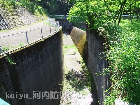 下流に来てみました。洪水吐きの下側です。