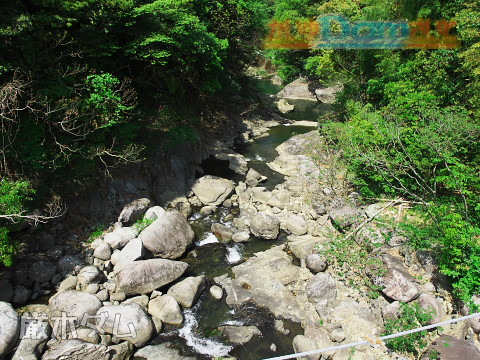 直下には吊り橋があります。この橋を渡って右岸下流へ移動できます。車は通れません。