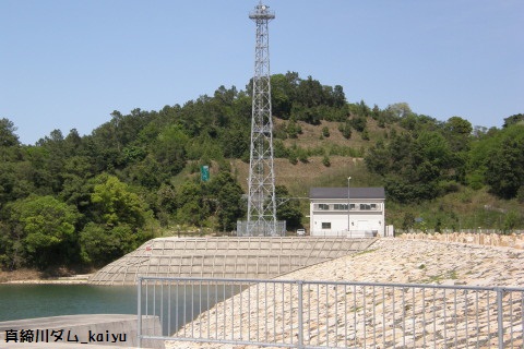 管理所は無人。となりには大きな鉄塔がある。県内のダムではこんなに大きな鉄塔はない。他のダムと違って町の中にあるためかな。