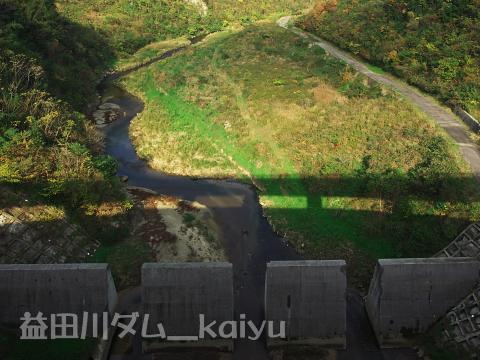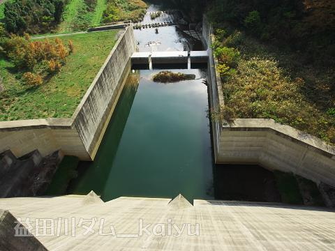 このように、貯水池側には水がなく、ほかのダムでは見られない光景。ここに水が貯まるときは洪水を調節している時だけです。今度は晴れた日に訪れたいと思います。