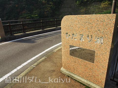 ダム湖は「ひだまり湖」という名前のようです。通常は水がありませんけど。
