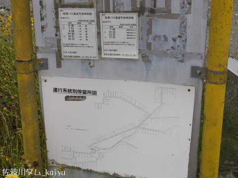 佐波川ダムはバス路線に含まれており、公共交通機関を利用して見学に来ることが可能である。バス停に大きく「佐波川ダム」という文字があるはずだが消えていた...本数は少ないので注意が必要。