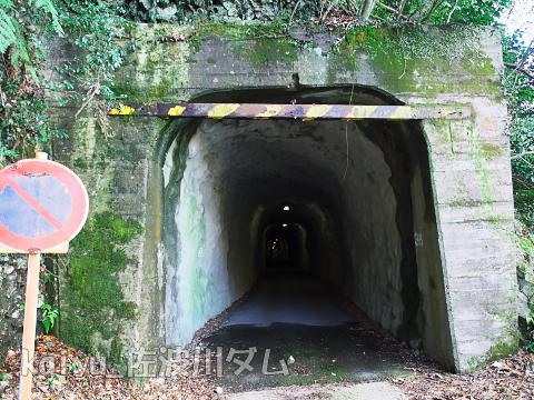 いきなりですが、左岸側のトンネルを抜けて見ました。このトンネル内部はモルタルが吹き付けてあるだけのうえ、照明も消えているところがあったり、途中で曲がっているので先が見えないのでちょっと雰囲気があるのです。車も通行可能ですが非常に狭いので興味がある方は歩いてね。