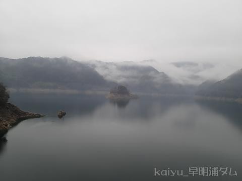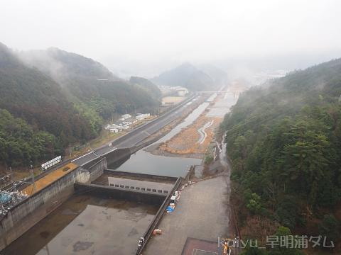 右岸からダムを望む。雨が降っているのはあの人が居るからだとか。