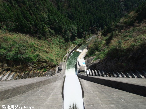 島地川ダムは佐波川の支川島地川にあるダム。天端道路が国道になっている数少ないダムの一つ。
