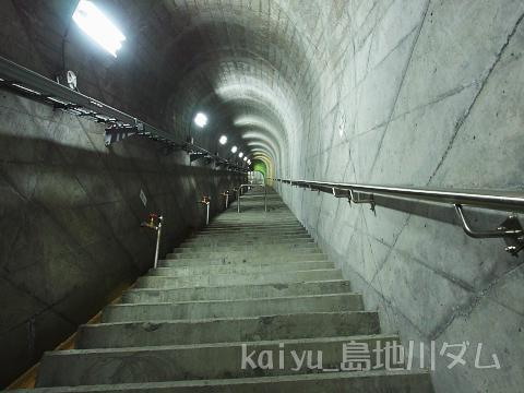 2014年12月の雪が積もる中、中国地方ダムマニア認定証をもらうために平日に訪ねました。平日に訪ねるとダムの業務に支障がない範囲で、ダムを案内して頂けるそうそうです。早速、案内を依頼して、監査廊へ。一気に転げ落ちないよう途中に車止めが設置されています。