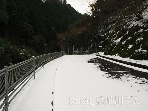 普段は入れない、ダム直下から。今日はダムに至る道にも積雪がありました。