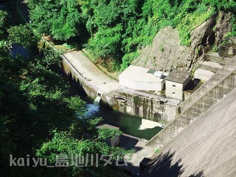左岸から下流を望みます。前回見学した発電設備から放流しているようですね。