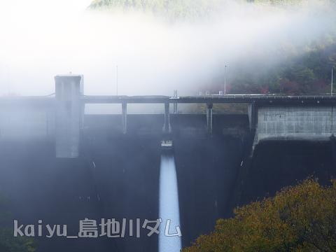 2015年11月に訪ねました。秋の島地川ダムです。早朝の霧と紅葉がきれいですね。