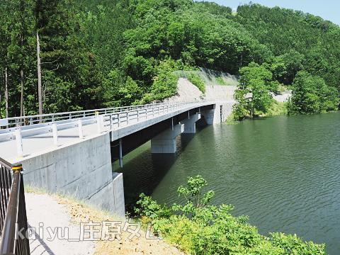 貯水池を堪能したので、下流に架かる橋から。最高水位に到達してたら水が流れていたのですが。