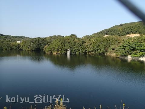 2015年に訪ねました。早速、到着。反射が・・・谷山ダムです。土地改良区が管理しているようです。